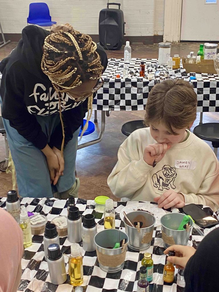 We decided to use SoapOcracy, our make-you-own natural bodycare experience, as a Club that would empower young people to have fun, develop friendships, make money and be healthy, social and eco-conscious. We worked with AiCC Youth ChangeMakers, our team of young social entrepreneurs aged 11 to 18, to co-design a suitable programme; adding green education and physical, mental wellbeing and enterprise workshops to the main handcrafting activity. On the last day of the Club, we organised a New Year’s party. Opening our doors to more children and young people, there was a disco, bodycare making, party games, glow sticks, festive snacks making, fake tattoos and a photo booth to create fun memories.